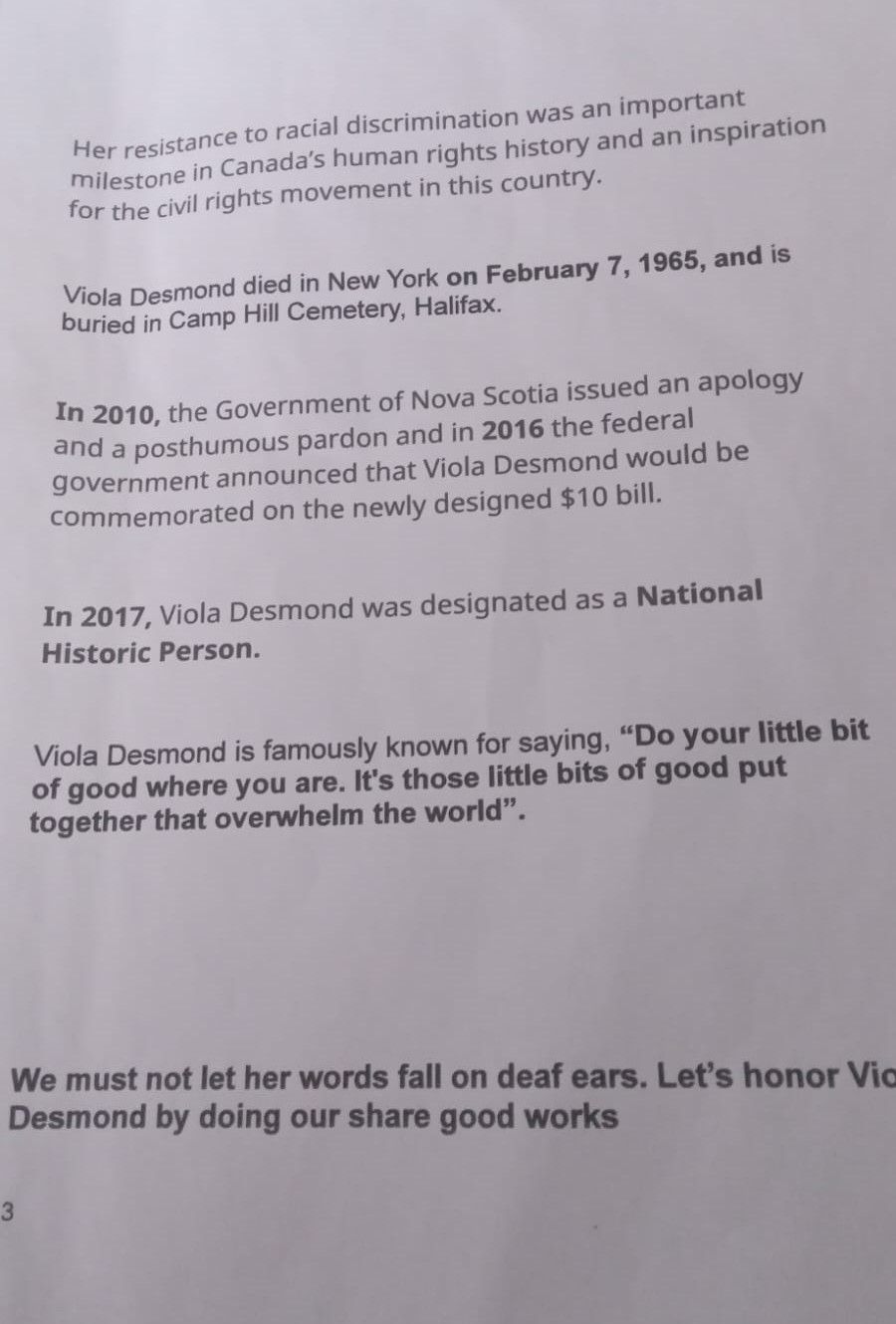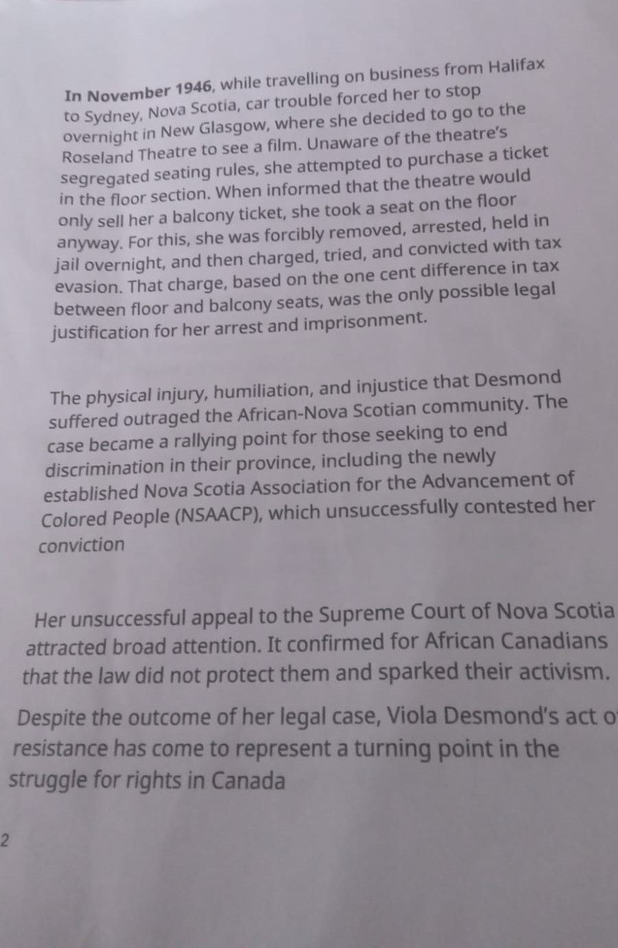 Reflections on Viola Desmond